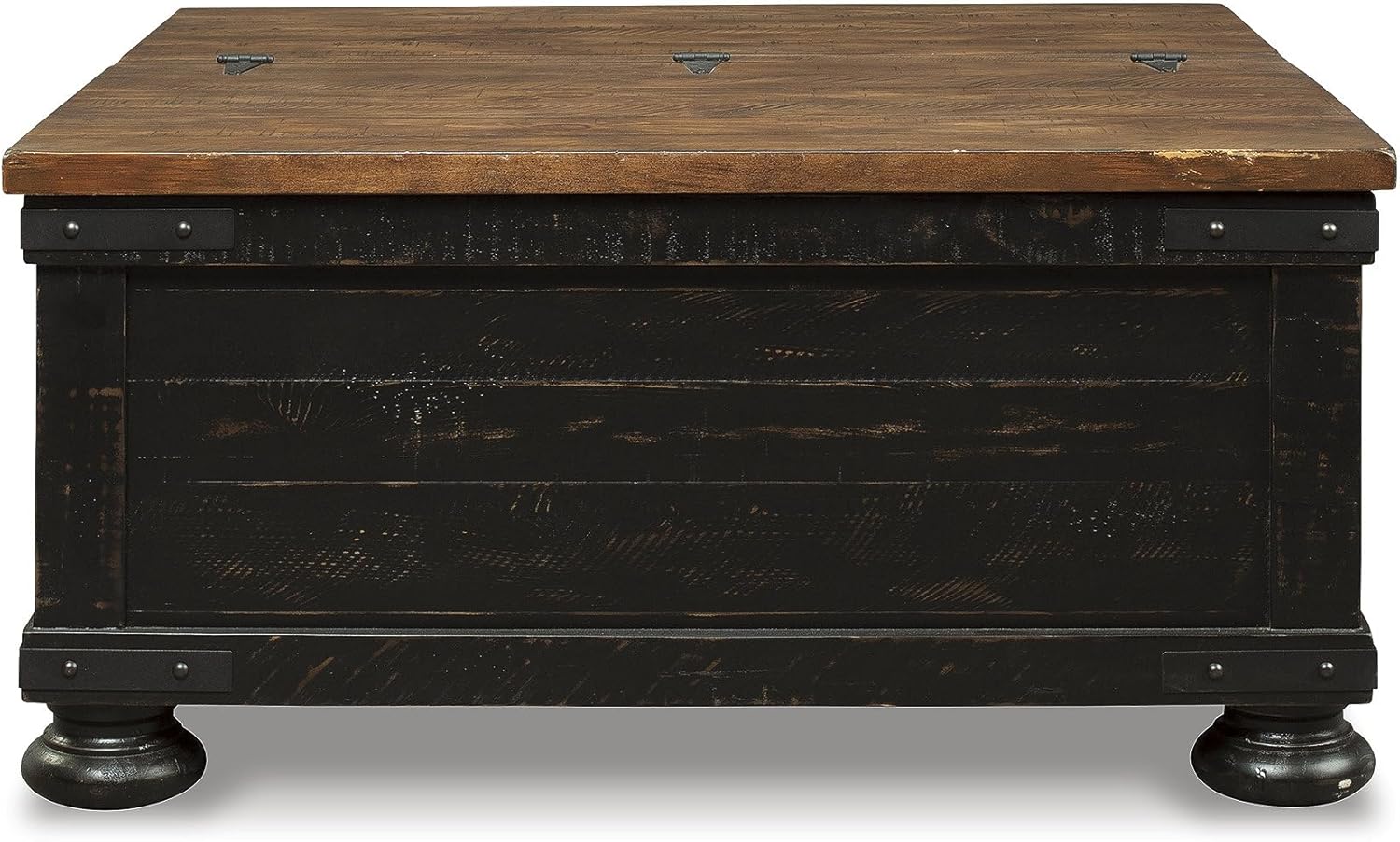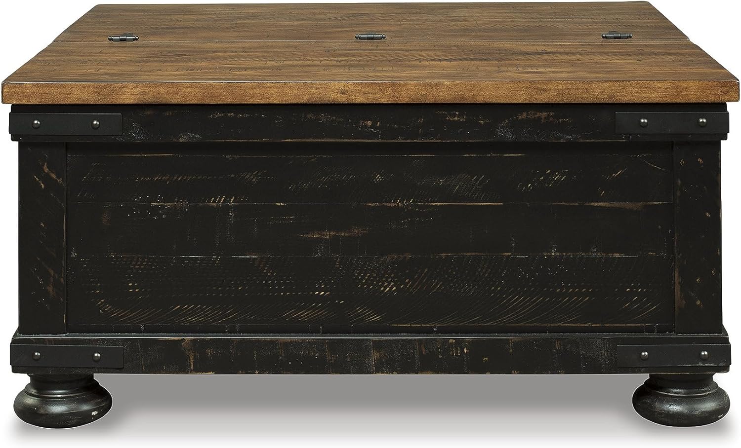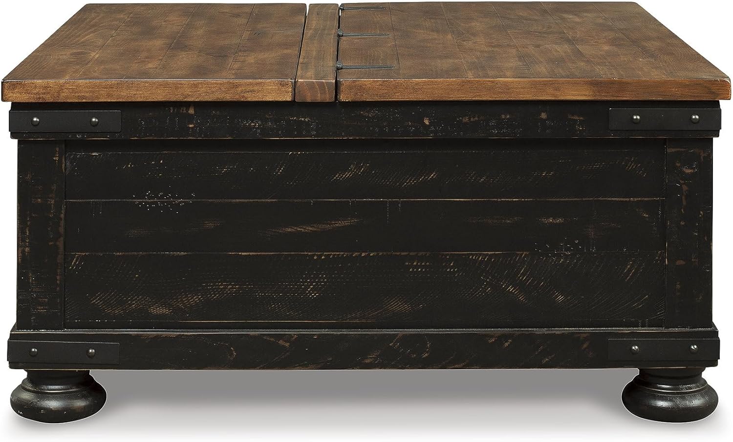 Signature Design by Ashley Valebeck Farmhouse Lift Top Coffee Table with Storage, Distressed Brown & Black Finish